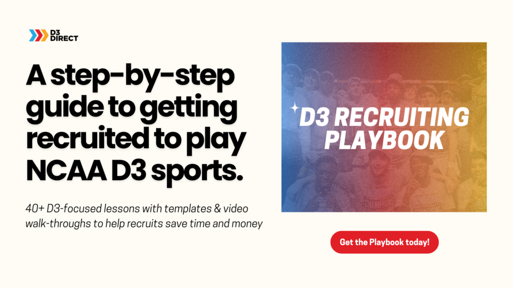 Aiming to go D3? The D3 Recruiting Playbook gives you a clear, step-by-step roadmap to the recruiting process – what coaches value, key milestones from early high school through application season, and how to build a target list of schools that fit your needs.